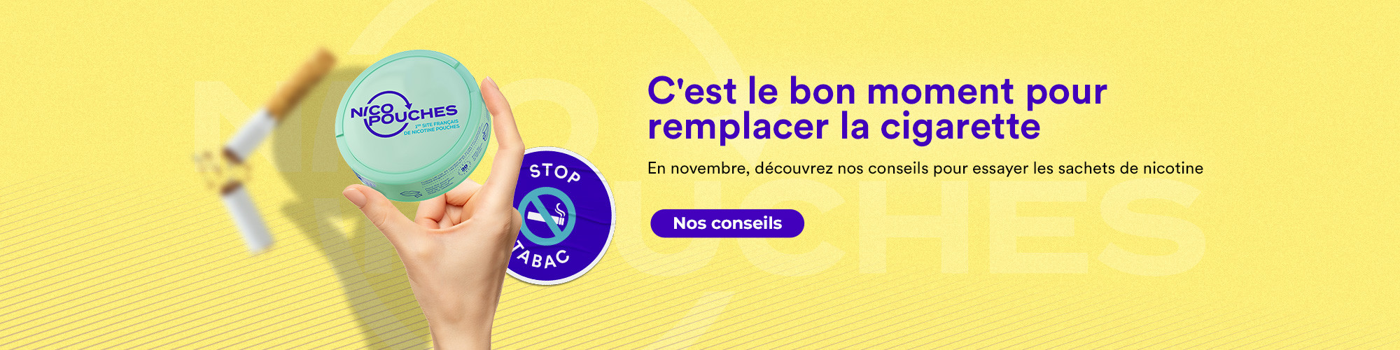 Les sachets de nicotine sont une alternative à la cigarette traditionnelle. Les nicotine pouches sont des nouveaux substituts nicotiniques pratiques et discrets qui peuvent s'utiliser partout où il est interdit de fumer ou vapoter. Les nicotine pouches sont aussi appelés sachets de nicotine, nicopods et snus sans tabac. Ils sont inspirés sur la forme par le snus suédois traditionnel. Cependant, ils ne contiennent pas de tabac, uniquement de la nicotine, des arômes et des fibres végétales. Ils s’utilisent en les glissant sous la lèvre, avec une diffusion de la nicotine entre 25 minutes et 45 minutes au contact de la gencive. Ils sont très discrets et ne se remarquent pas une fois placés sous la lèvre. Ils ne dégagent ni fumée, ni vapeur, ni odeur. Il existe également des sachets sans nicotine appelés Energy Pouches. Ces sachets contiennent des vitamines et des molécules naturelles pour vous aider à retrouver un coup de boost. Nicopouches vous présente également les CBD pouches avec ou sans nicotine, qui peuvent vous aider à retrouver relaxation et détente grâce aux vertus supposées du CBD.
